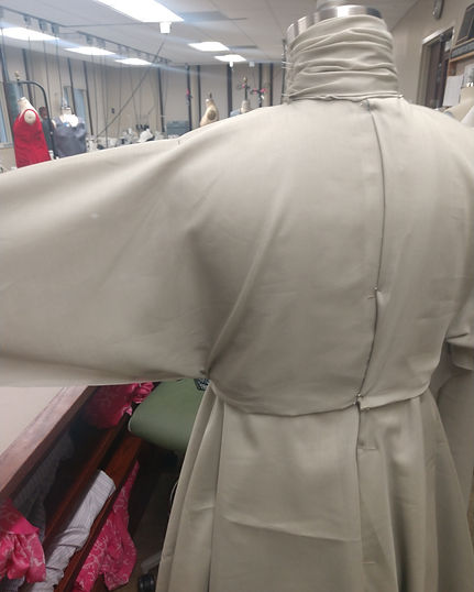 I started this dress by draping in muslin. The goal of the project was to allow the draping itself to inspire the design. As a closure the dress features a zipper at center back. I was able to display this design at the end of semester student design showcase.