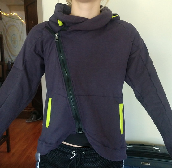 The jacket is designed to acompany the compression garment. Burn survivors have a difficult time regulating their body temperature which is why a lightweight layer pairs perfectly with the initial recovery garment. In addition, it is important that the jacket is wearable even after recovery because of the way burn survivors become emotionally attached to the garments that take them through the recovery process. The main fabric of the jacket is a comfortable cotton doubleknit and features a magnetic zipper across the front for easy closure. The hood is removable for versatility and there are hand warmers attached to the sleeve openings that act as an extention of the compression garment.